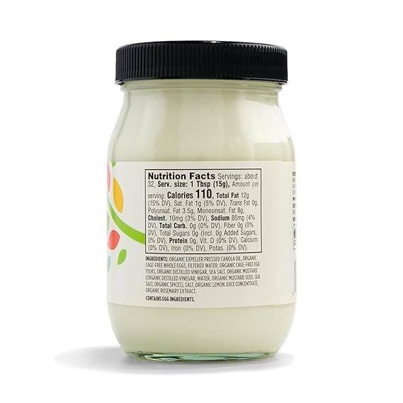 Organic Expeller Pressed Canola Oil, Organic Cage-Free Whole Eggs, Filtered Water, Organic Cage-Free Egg Yolks, Organic Distilled Vinegar, Sea Salt, Organic Mustard (Organic Distilled Vinegar, Water, Organic Mustard Seed, Sea Salt, Organic Spices), Salt, Organic Lemon Juice Concentrate, Organic Rosemary Extract.