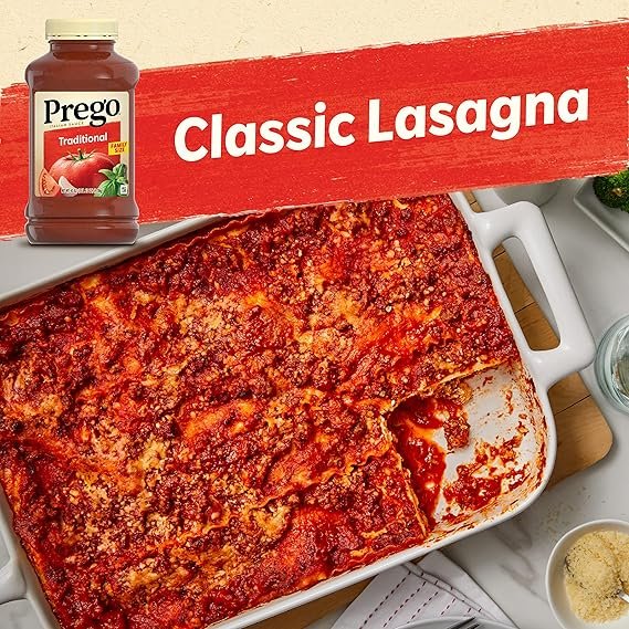 Be the hero at dinner with Prego Traditional Pasta Sauce. Versatile and delicious, this classic red sauce features the rich, sweet taste of vine-ripened tomatoes balanced with flavorful herbs and seasonings, perfect for any recipe. This pasta sauce has a taste everyone loves and a thick texture that doesn’t water out, making it a perfect pairing with any pasta. Prego pasta sauce is gluten free, vegan and made without artificial colors or added MSG for a spaghetti sauce you can feel good about. Top off any pasta with this Prego Italian sauce for a quick, family-pleasing meal, or use it as a base for your favorite recipes. The tomato sauce jar top is easy to close and store in the refrigerator for leftovers. Give your family the taste everyone loves with Prego sauces. In addition to Traditional Pasta Sauce, Prego offers a variety of favorites, including Chunky Tomato, Garlic and Onion Italian, Low FODMAP and more!